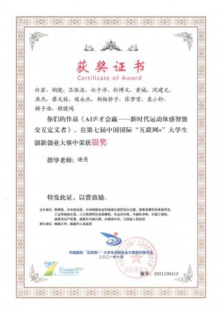 2021年“互联网+”全国银奖获奖证书