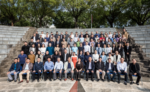 2023年10月27日,用友网络公司董事长王文京校友(左六)出席iuap协同创新中心揭牌仪式