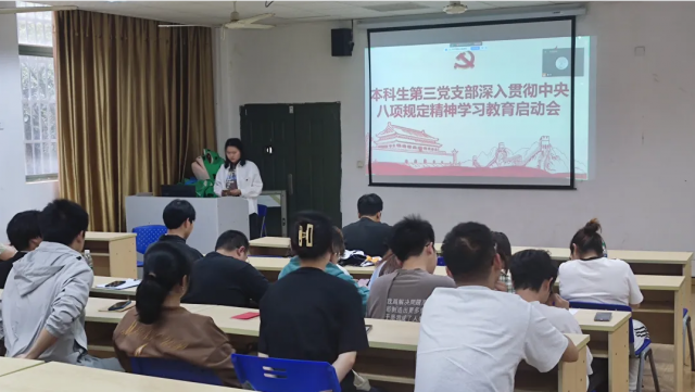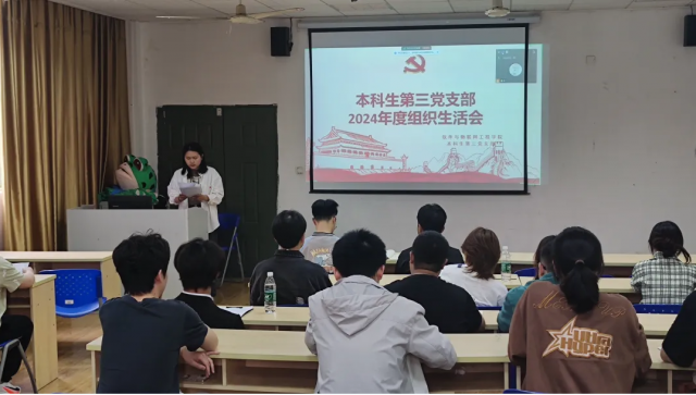 2025年3月26日,成人影院 本科生第三党支部于荟庐一楼报告厅召开组织生活会暨深入贯彻中央八项规定精神学习教育启动会。会议由支部副书记徐海涛主持。会议紧密围绕深入学习贯彻党的二十大精神这一核心,坚持自我革新,旨在强化党支部的政治引领和组织建设能力。