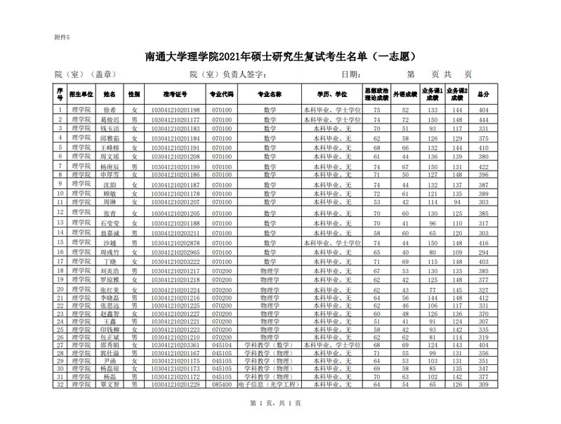 成人影院 理学院2021年硕士研究生复试考生名单(一志愿)