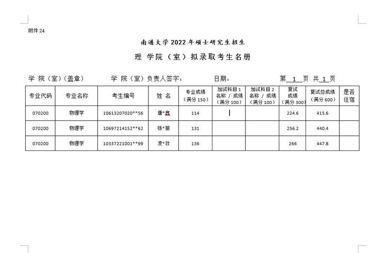 理学院2022年物理学调剂(第一批)拟录取名单公示