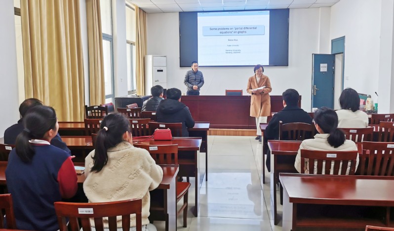 4月8日上午,复旦大学华波波教授做客成人影院 理学院,做了题为“图上的一些‘偏微分方程’问题”的学术报告。报告由理学院院长陈玉娟主持,理学院部分教师和研究生聆听了报告。