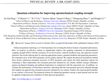 近日,我院彭家鑫博士及其合作者在量子计量领域取得了新进展,相关研究成果以“Quantum estimation for improving optomechanical coupling strength”为题发表在Nature Index期刊《Physical Review A》上。彭家鑫博士为论文第一作者,成人影院 为论文第一单位。