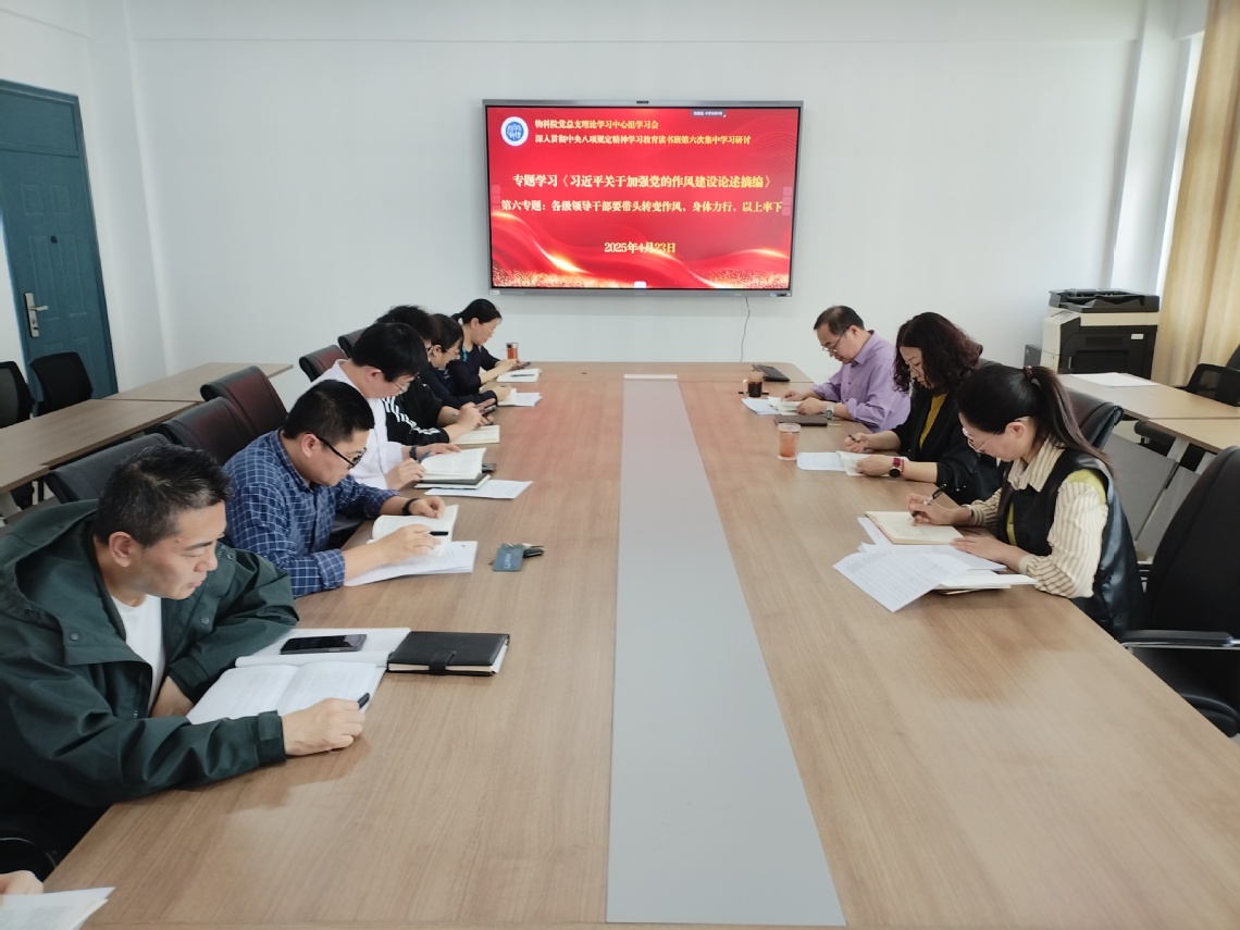 4月23日下午,物科院开展党总支理论学习中心组学习会暨深入贯彻中央八项规定精神学习教育专题读书班第二次集中学习,学习研讨《习近平关于加强党的作风建设论述摘编》第四、五、六专题。学院党总支书记徐凌主持会议。
