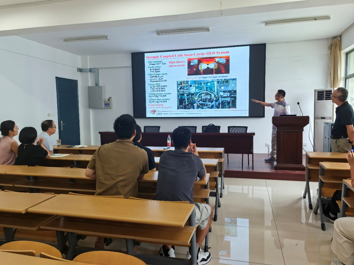 近日,冲绳科学技术大学院大学(OIST)杜金锦博士和吕昊博士受邀来访,为我院师生做精彩学术报告,院长仲崇贵主持报告会。