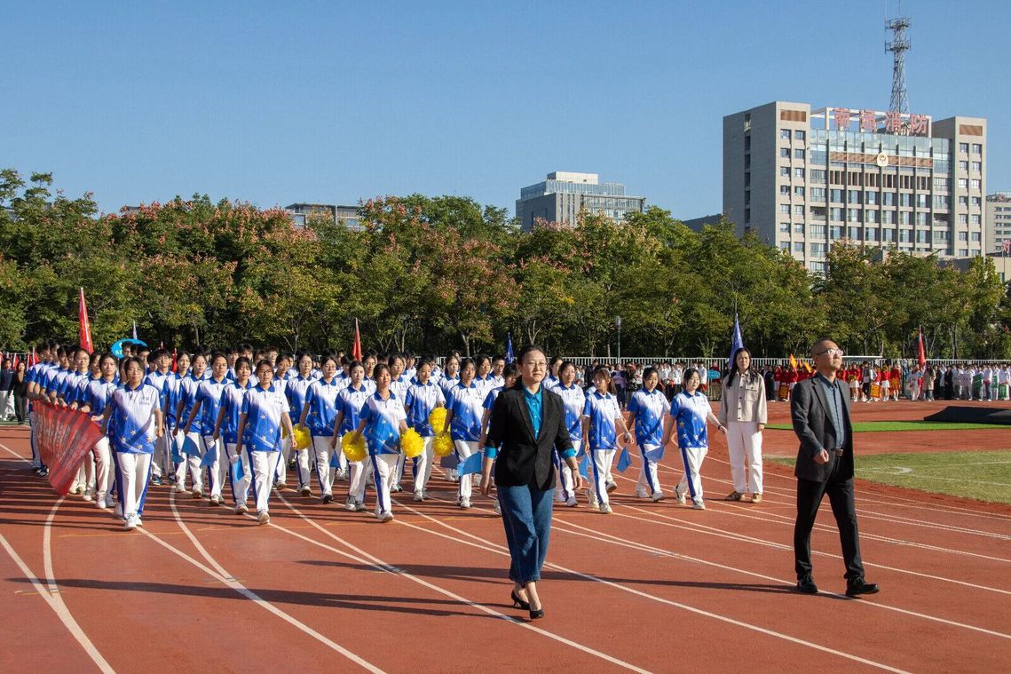 开幕式上,伴随着激昂旋律奏响运动序曲,物科院方阵以整齐划一的步伐铿锵走来,蓝底白字的院旗于阳光下猎猎生风。主席台前,队形灵动变换,啦啦操表演活力绽放,“F=ma,拼搏即‘力’量”“v=s/t,冲刺看‘速’度”的标牌彰显理学巧思,伴着“格物致理,追光逐电,锐意进取,勇夺荣光”的嘹亮口号,物科学子英姿焕发,将理性之美与运动激情熔于一炉,在赛场之上书写别样风采。
